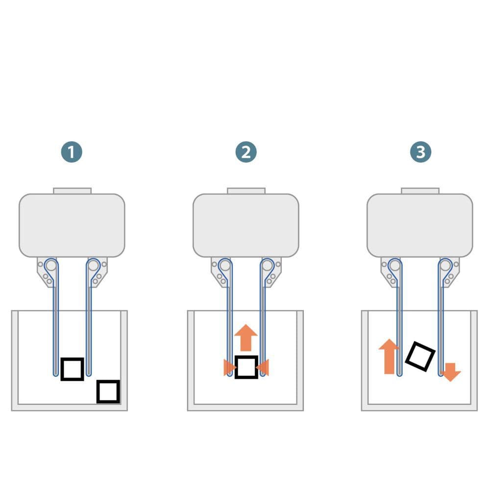 また、両グリッパに設置されているベルトの回転数を制御することにより、グリッパーの中で対象物の方向を変えることも可能です。